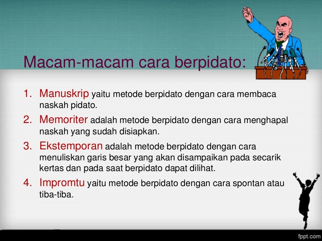 20 contoh pidato singkat pendidikan perpisahan narkoba. Pidato tentang kebersihan pengertian tujuan struktur serta . Impromptu adalah metode penyampaian pidato tanpa persiapan naskah, catatan kecil, atau menghapal sebelumnya. Contoh pidato ekstemporan tentang kebersihan kumpulan ilmu. Naskah yaitu metode berpidato dengan membacakan teks/naskah pidato persuasif.