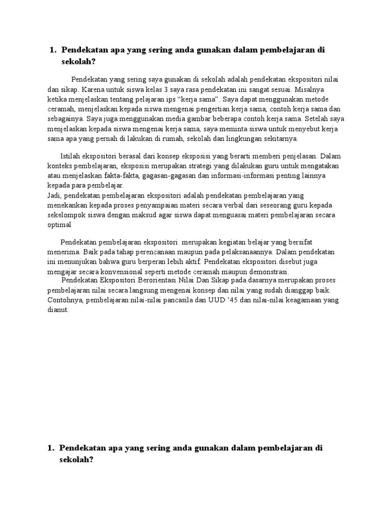 Telah disebutkan di bagian pendahuluan laporan. Cara merancang penggunaan metode pembelajaran ips di sd yang berlandaskan pendekatan ekspositori 66 c. Model pembelajaran dibedakan dari istilah strategi, metode, dan prinsip pembelajaran. Istilah pendekatan merujuk pada pandangan tentang terjadinya proses yang sifatnya … Metode pembelajaran matematika adalah cara untuk mencapai tujuan pembelajaran matematika.